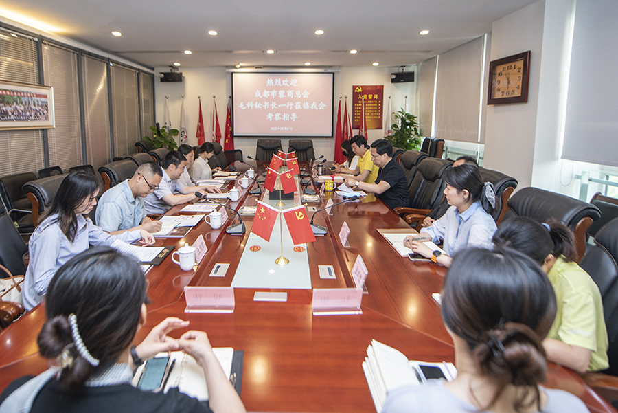 为加强沟通联络,促进合作交流,5月7日,蓉商总会秘书长毛科一行到访 ,我会党委书记、执行常务副会长、秘书长郑权国率秘书处工作人员热情接待。双方围绕商会的建设、发展、运营中的机遇和难点、问题和办法,以及如何有效推动双方携手合作进行了深入的交流探讨。