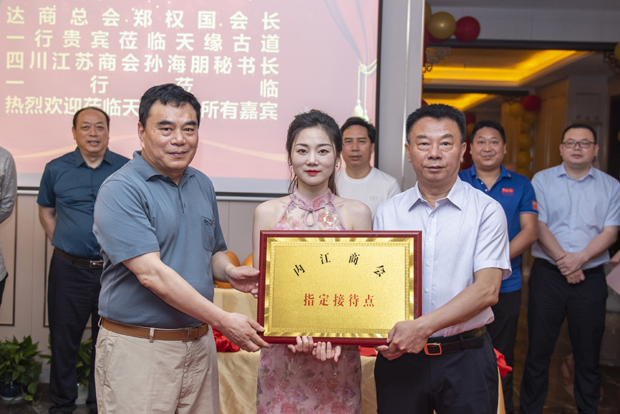 开业庆典上还进行了授牌仪式,郑权国秘书长为天缘古道授牌成为 、成都达州商会指定消费场所,杨远见名誉会长为天缘古道授牌成为内江商会指定接待点。