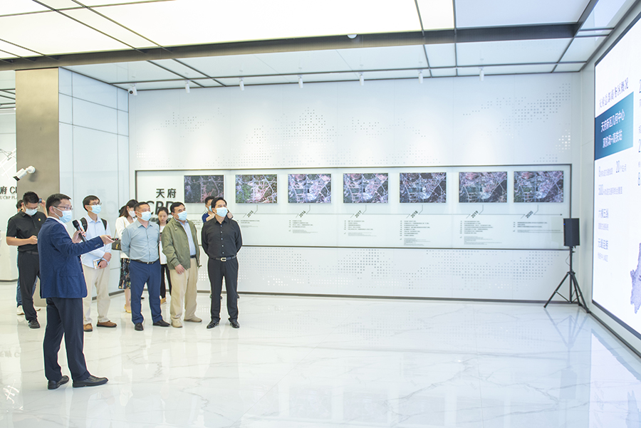 随后,考察团一行来到了天府新区规划厅,对天府新区发展理念、生态格局、城镇空间结构、国内外交通体系、功能定位、公共服务设施体系等进行了总体了解。