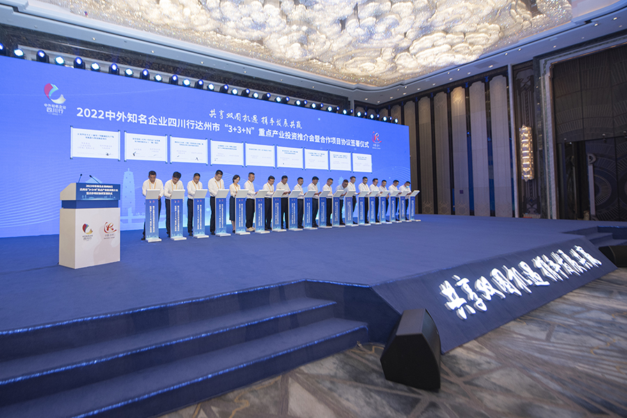 开放共创繁荣,创新引领未来。7月15日,2022中外知名企业四川行达州市“3+3+N”重点产业投资推介会暨合作项目协议签署仪式在成都举行。省人大常委会副主任宋朝华出席并讲话,达州市委书记邵革军出席并致辞,达州市委副书记、市长严卫东主持大会。省经济合作局一级巡视员谢贤荣,达州市委副书记、达州高新区党工委书记熊隆东,达州市委常委、达州东部经开区党工委书记唐廷教,达州市委常委、政法委书记孙骏,达州市副市长颜晓平,达州市副市长唐志坤出席大会。达州市各县(市、区)、市直园区、市级相关部门负责同志,以及江西赣锋锂业、心里程控股集团、东方电气、广东美联新材料、蜂巢能源等150余家知名企业参加大会。