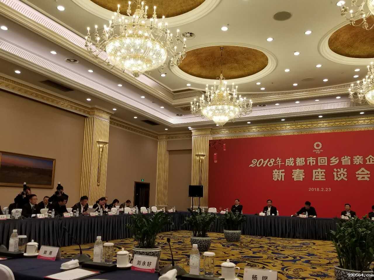 2月23日,由中共成都市委、成都市人民政府主办,成都市投资促进委员会、市工商业联合会和川商总会承办的“2018年成都市回乡省亲企业家新春座谈会”成功举行。成都市长罗强出席,成都市发改委、市经信委、市科技局、市投促委等10个市级部门,以及天府新区、高新区、锦江区等22个区市县负责人与会。此外,还有来自北京、广东、福建、海南、西藏等国内20个省市的100余位川商企业家代表参加活动。