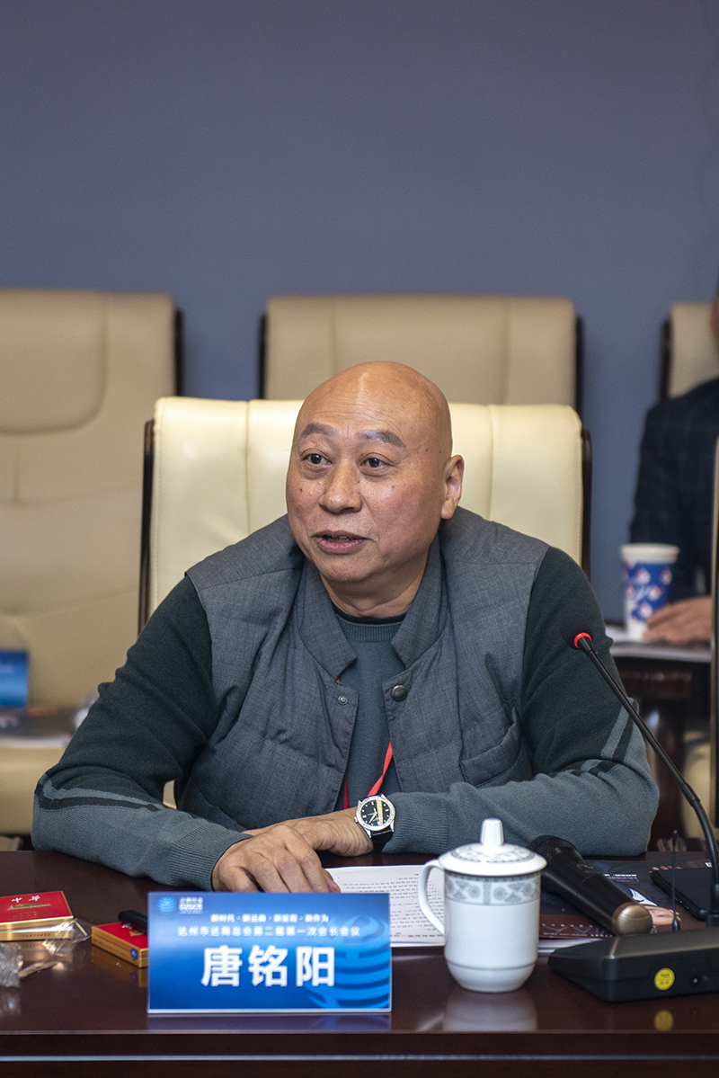 终身名誉会长唐铭阳围绕“商会究竟要达成什么样的目标”这一主题发表讲话,并提出四点意见。一是商会成员的企业实力要与 响亮的名号保持一致,希望打造出更多行业领先、全国有名的 企业;二是对于外界称呼我们为“达州帮”,“帮”不是帮派,而是互相帮助,全体 应团结一心、抱团发展,这是 获得更大发展的基础;三是家乡达州拥有众多发展机遇,希望更多 关注家乡,把自身发展与家乡发展融为一体;四是商会要充分发挥平台作用,做好政企沟通桥梁,为商会企业发展赋能,希望在新一届会长带领下,全体 能获得更大发展。