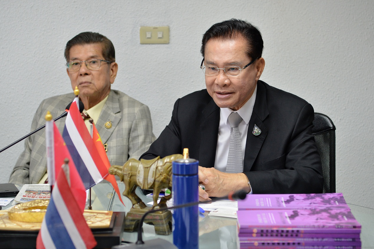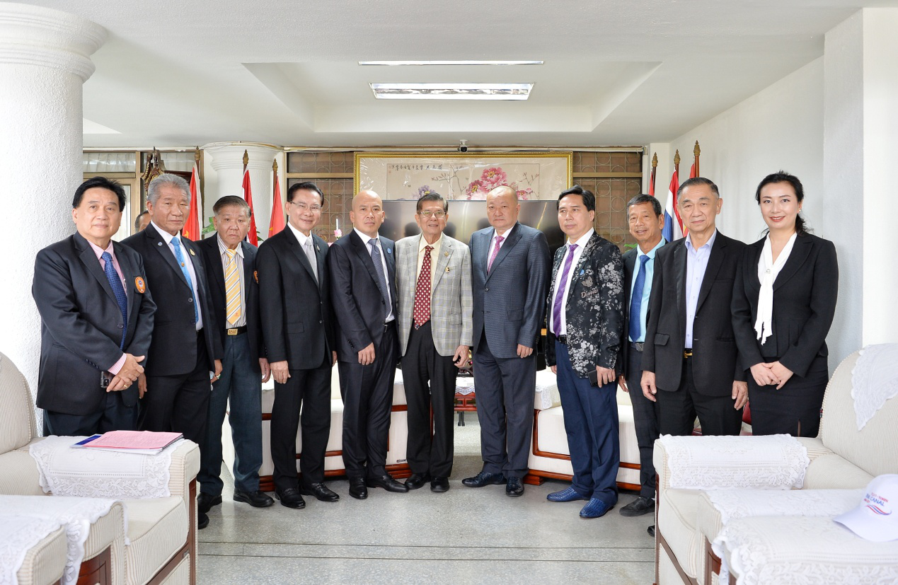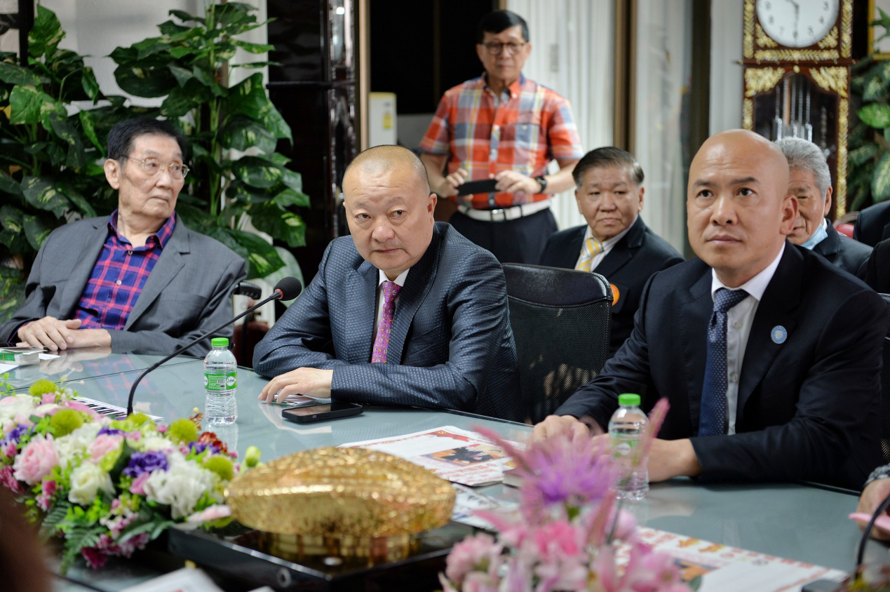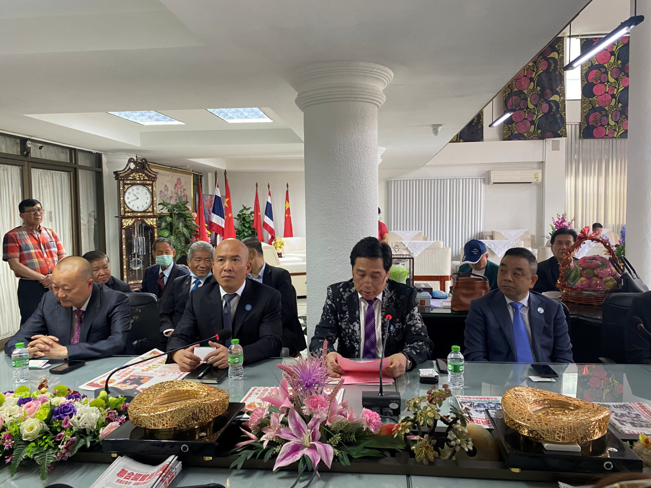 泰中艺术家联合会蔡义批会长为会谈致辞,向全球 商务考察团来访表示欢迎,盛赞 是中国的优秀市级商会,会员众多,实力雄厚,希望通过本次的访问,加深认识,共谋发展,共同来推动中泰友好关系和经贸合作。