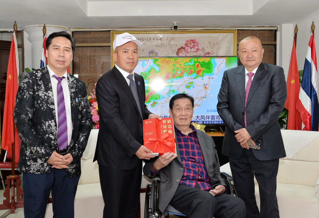 全球 执行会长兼秘书长郑权国代表考察团讲话,他说,泰国与中国一衣带水,是中国-东盟自由贸易区和一带一路上重要的友邻和合作伙伴。20多年来,蔡义批会长带领泰中艺术家联合会,联系和团结了一大批优秀的艺术家,提供平台和机会,让中国艺术家走进泰国,了解泰国,亲近泰国,也组织泰国的艺术家们访问中国,去认识和感受中国,同时创作出很多体现泰中友好的音乐、舞蹈、美术和影视作品,为中国和泰国搭建了一个艺术沟通、文化交流的友好平台。我们深知蔡会长在中泰国美术、体育、音乐交流等领域所付出的心血和努力,为两国的深厚友谊作出了巨大的贡献,我们为此深表敬佩,在此向你致以崇高的敬意。