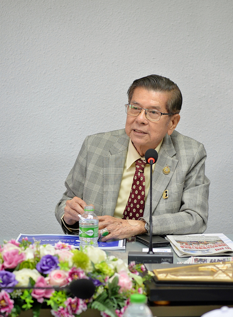 在座谈会上,泰国蔡氏宗亲总会理事长蔡秋明,侨泰集团董事长徐惠侨,华北股份有限公司董事长周振发分别在会上发言,向 考察团介绍各自企业的业务范围和经营情况,双方企业家互相交流,互通讯息,期望今后加强往来,共谋发展。