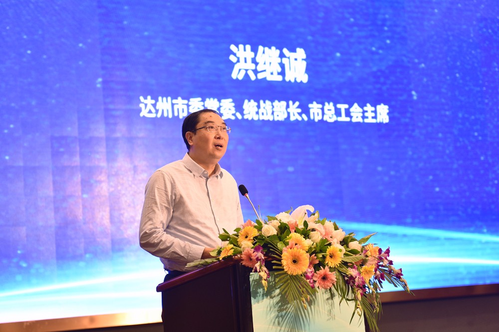 达州市委常委、统战部长洪继诚发表致辞。他说,面对经济发展新常态,达州将继续保持加快发展、转型发展定力,坚定实施“三大战略”,着力构建“五大新格局”,以供给侧结构性改革为主线,统筹抓好稳增长、促改革、调结构、提质量、惠民生、防风险各项工作,促进全市经济社会持续快速健康发展和社会和谐稳定。希望 的企业家们在新经济形势下,怀抱发展信心,深化企业改革,在自身强大的同时,一如既往地关注达州发展、关心和积极参与家乡建设,充分发挥商会平台优势,多为达州发展牵线搭桥、多为家乡建设献计出力,共建达州美好明天。