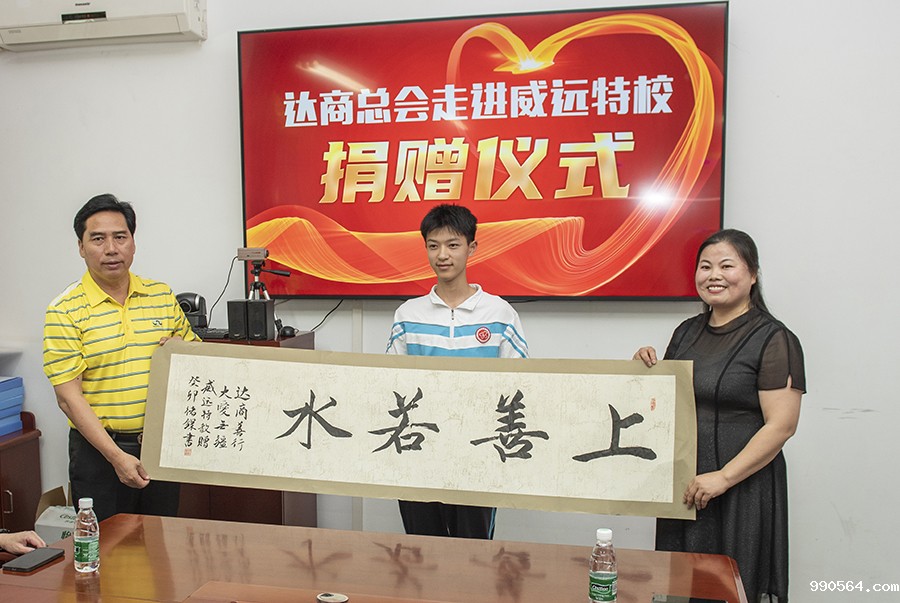 沈泽花校长代表威远特殊教育学校向taptap点点登陆赠送了一份特殊的礼物——该校一位17岁的聋哑少年,现场提笔书写“上善若水”,感谢taptap点点登陆的爱心与善举。