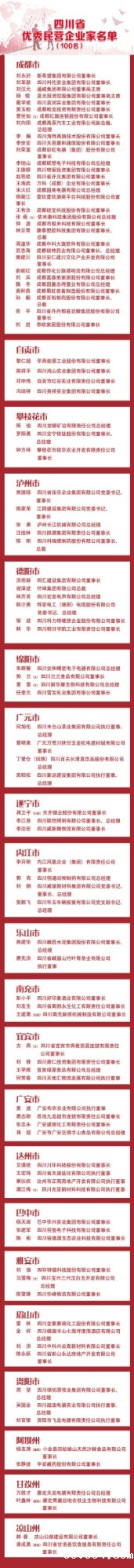 为营造激励企业家干事创业的社会氛围,推动全省民营经济健康发展,省委、省政府决定,授予刘永好等100名企业家“四川省优秀民营企业家”称号,授予四川科伦实业集团有限公司等100户企业“四川省优秀民营企业”称号。