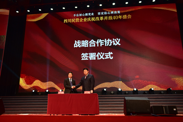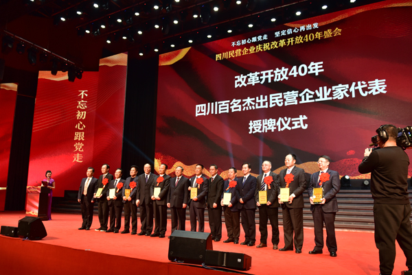 为庆祝改革开放40周年,深入学习贯彻习近平总书记在民营企业座谈会上重要讲话和四川省民营经济健康发展大会精神,推动全省民营经济高质量发展,12月7日,由四川省委统战部、四川省工商业联合会主办,主题为“不忘初心跟党走、坚定信心再出发”的四川民营企业庆祝改革开放40年盛会在成都隆重举行。