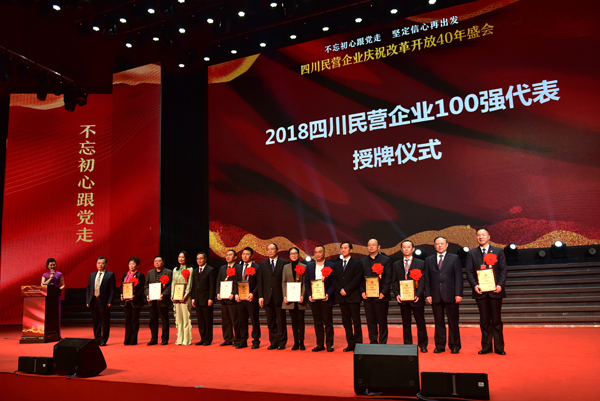 四川省政府副省长、党组成员彭宇行为大会致辞。全国工商联副主席、省政协副主席、省工商联主席陈放发布“改革开放40年四川百名杰出民营企业家”名单,四川省委统战部副部长、省工商联党组书记陈泉发布“四川省民营企业100强榜单”。