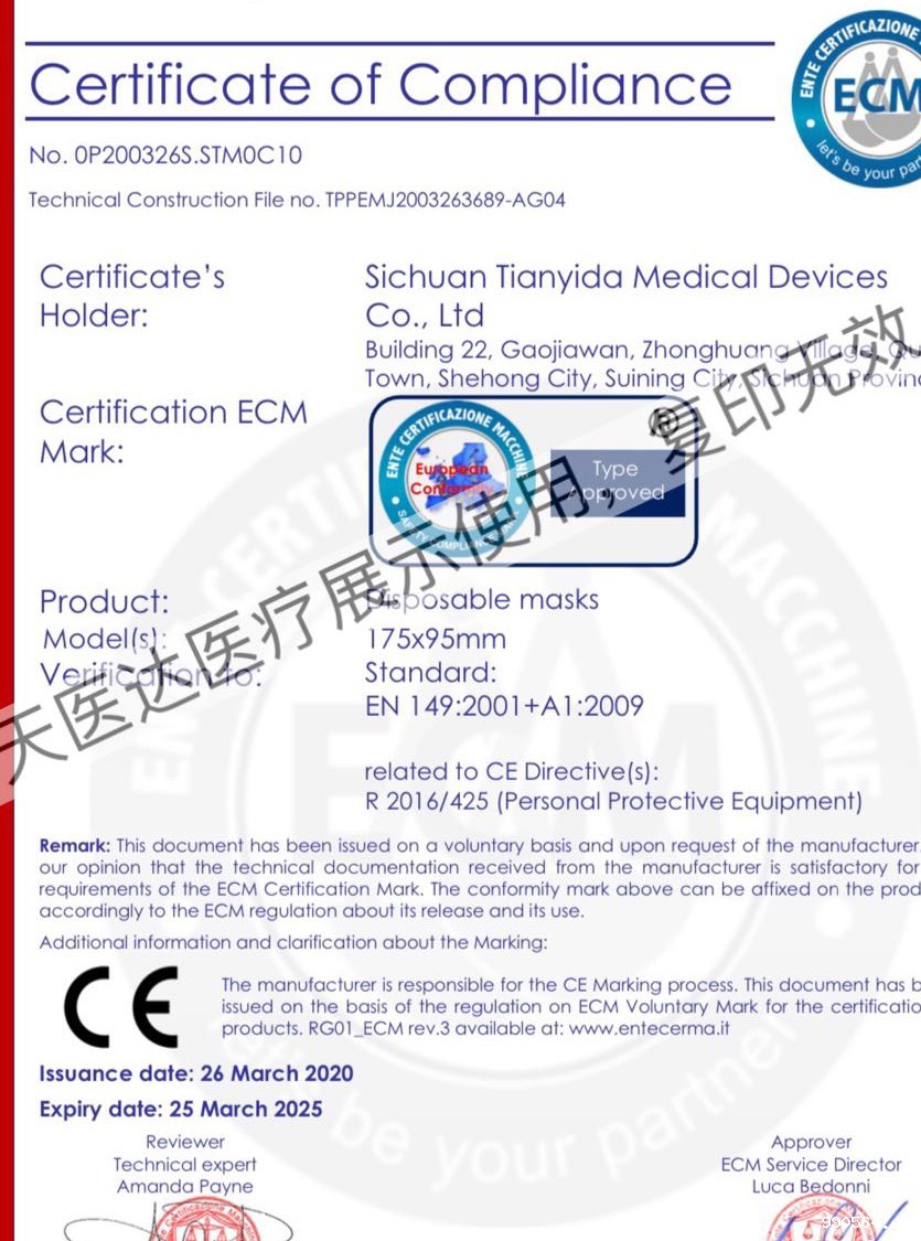 “天医达”一次性使用口罩,舒适度较高,毫无不良气味,“肤感”饱满柔雅,无论是弹性十足的耳带还是口罩对面部的接触,其张弛度刚刚好,尤其鼻夹能与鼻梁契合得严丝合缝,耳部也能被口罩贴得很紧,各处防护效果,都能做到一流,耳带长度也同样适合欧美民众,每只口罩都是“老实货”,它厂生产的同类30枚装的口罩盒,该公司的只能盛装得下20枚,全部采用全球质量最佳的无纺布和熔喷布,其隔离防护效果良好。目前,该产品已取得国家卫生部门相关生产资质及国际CE认证。