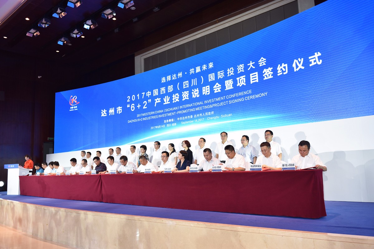 9月14日下午,由中共达州市委,达州市人民政府主办的2017中国西部(四川)国际投资大会,达州市“6+2”产业投资说明会暨项目签约仪式在成都隆重举行。达州市委书记包惠,市委副书记、市长郭亨孝,达州市委、市人大、市政府领导和市直部门、各县(市、区),经开区的领导出席。200多位知名企业董事长、总裁、总经理参加说明会。 、成都达州商会会长刘峙宏,荣誉会长唐铭阳,常务副会长戴学斌、易熠、熊正宽、何正刚、刘坤,执行常务副会长兼秘书长郑权国, 执行会长何天涛,监事长田小兵,副会长覃才平、刘翔宇等商会领导应邀出席。